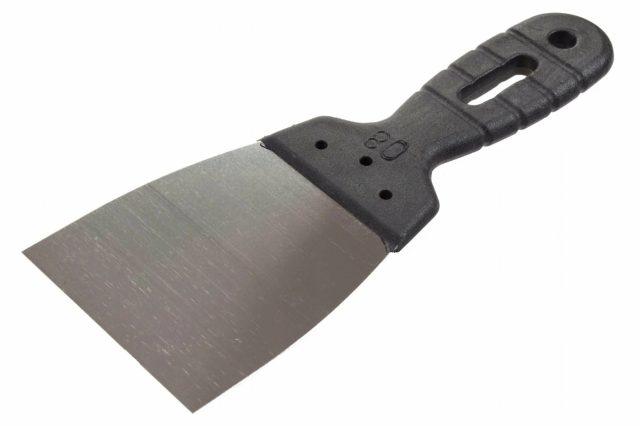Шпатель подойдет для нанесения на стены и другие поверхности растворов штукатурных смесей