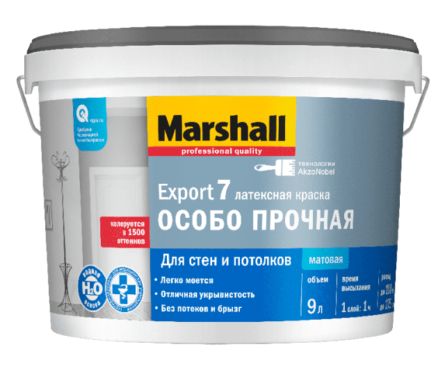 Краска MARSHALL Export-7 латексная ос.прочная 9л глубокомат.белая BC