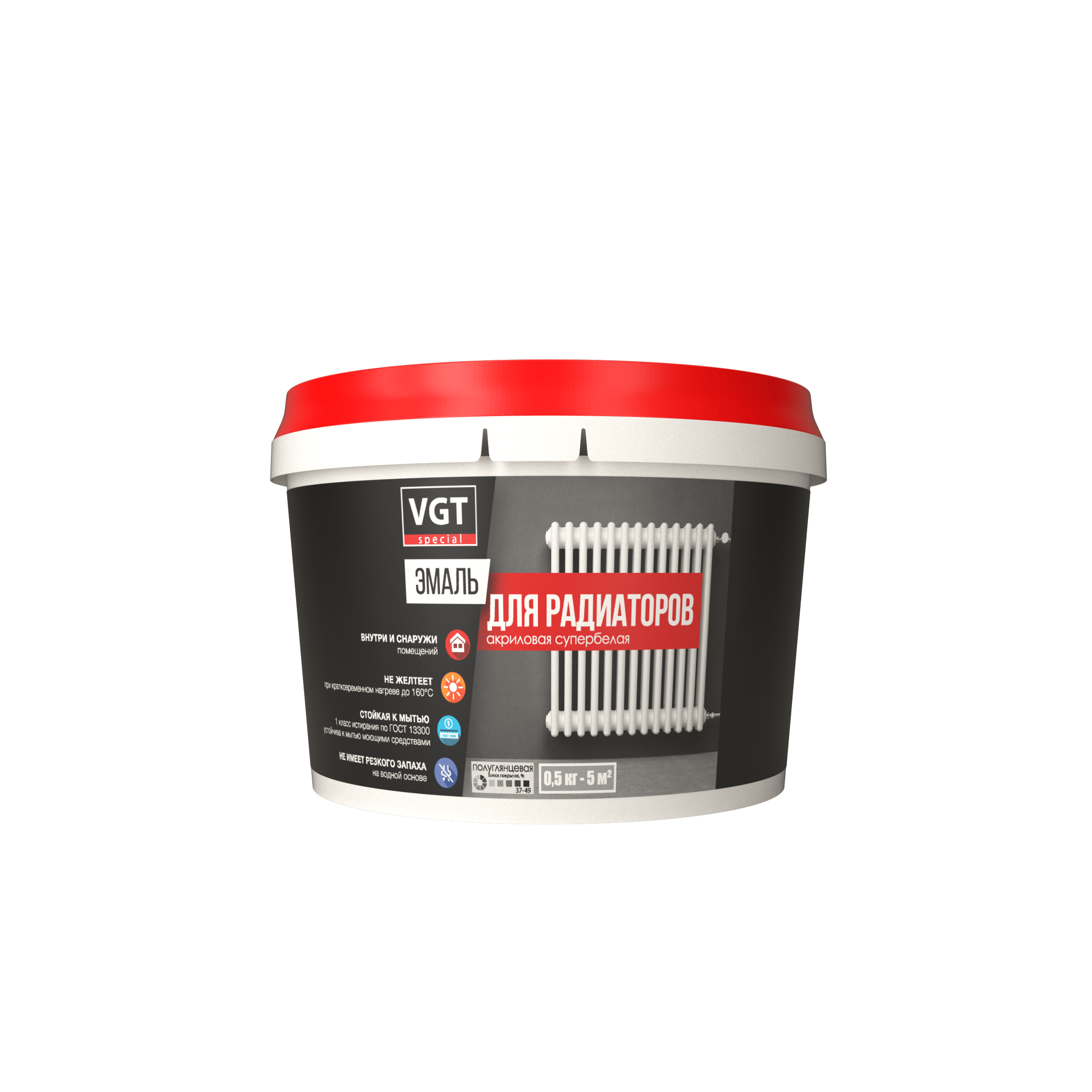 VGT ВД-АК-1179 ПРОФИ эмаль для радиаторов полуглянцевый, супербелый (0,5кг)